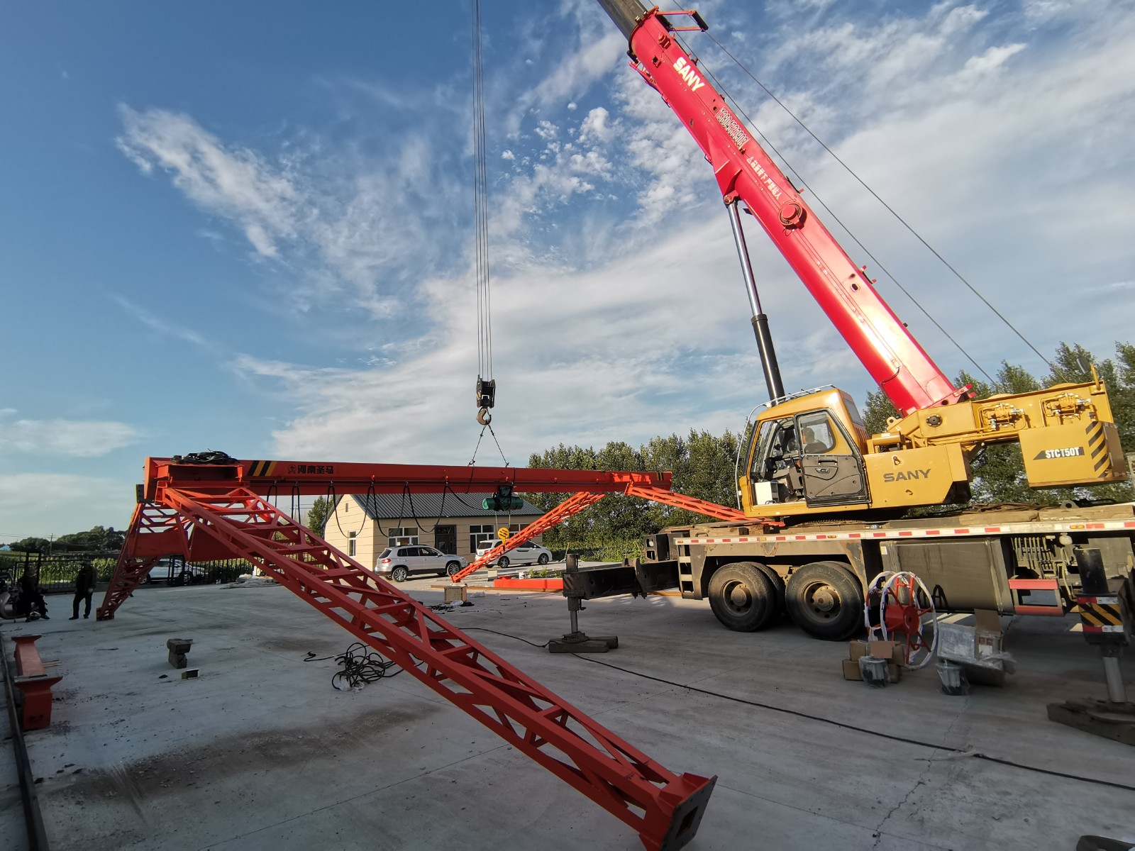 它的金屬結(jié)構(gòu)像門形框架,承載主梁下安裝兩條支腳,可以直接在地面的軌道上行走,主梁兩端可以具有外伸懸臂梁。