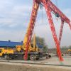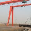 它的金屬結構像門形框架,承載主梁下安裝兩條支腳,可以直接在地面的軌道上行走,主梁兩端可以具有外伸懸臂梁。