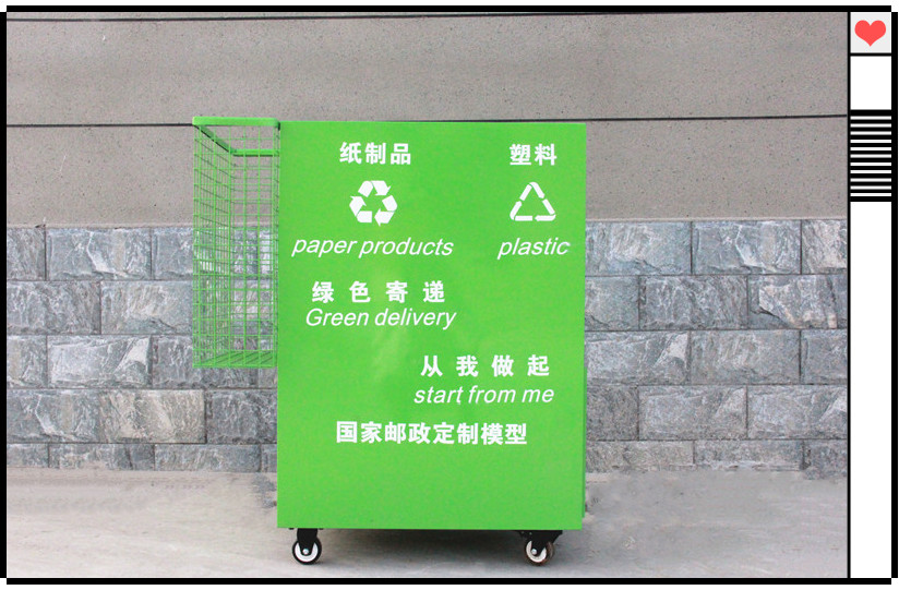 詳細(xì)信息 半封閉式箱體,由包裝投放口(包括紙質(zhì)類投放口及塑料類投放口)、工作臺(tái)/工具區(qū)、金屬收納筐組成。 印刷著“綠色寄遞,從我做起”宣傳語,讓大家一目了然,把丟棄的紙箱、塑料包裝等變廢為寶,循環(huán)使用。