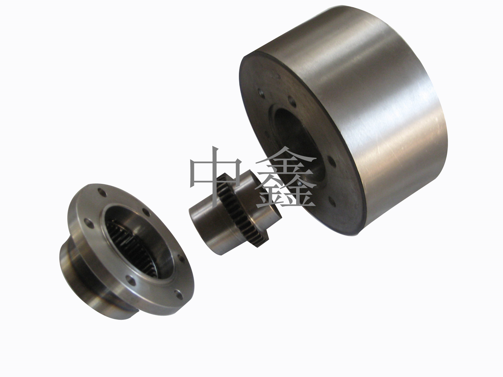 聯軸器又稱聯軸節。用來將不同機構中的主動軸和從動軸牢固地聯接起來一同旋轉,并傳遞運動和扭矩的機械部件。有時也用以聯接軸與其他零件(如齒輪、帶輪等)。常由兩半合成,分別用鍵或緊配合等聯接,緊固在兩軸端,再通過某種方式將兩半聯接起來。聯軸器可兼有補償兩軸之間由于制造安裝不精確、工作時的變形或熱膨脹等原因所發生的偏移(包括軸向偏移、徑向偏移、角偏移或綜合偏移);以及緩和沖擊、吸振。 [1]