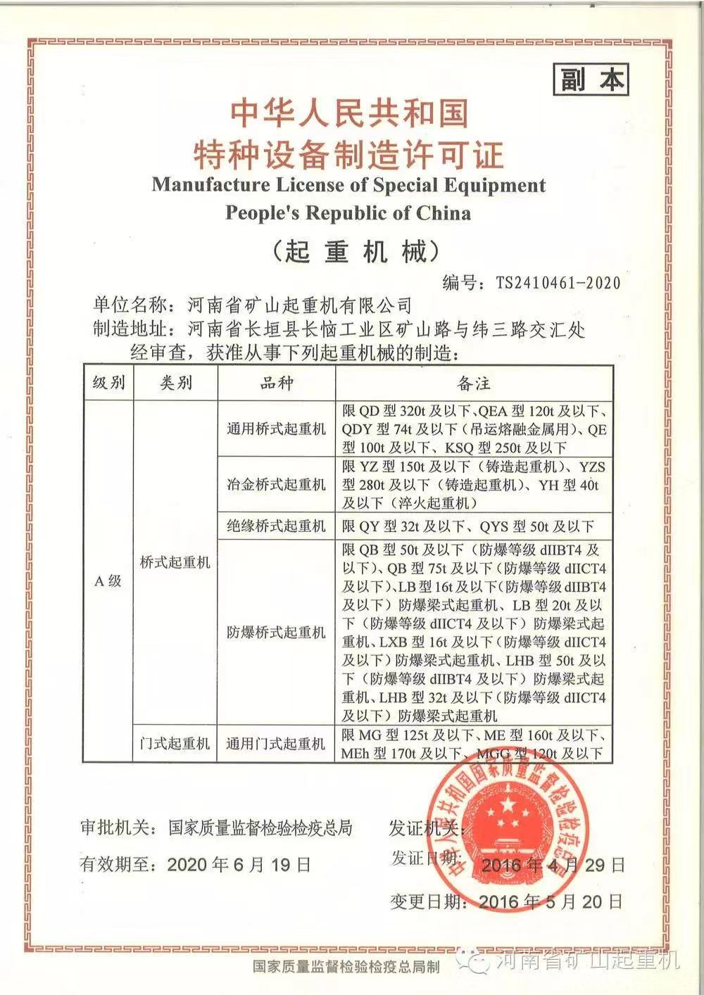 | 發(fā)證機構(gòu): | 質(zhì)量監(jiān)督局 | 發(fā)證時間 : | 2016-04-29 |