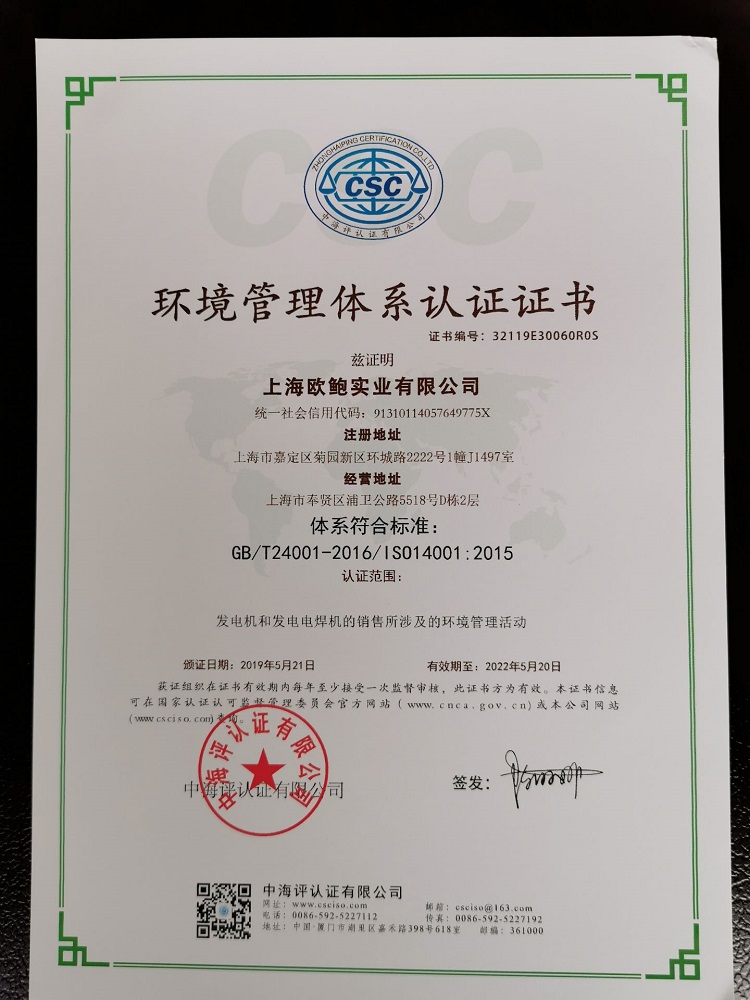 榮譽資質 環境管理體系認證證書