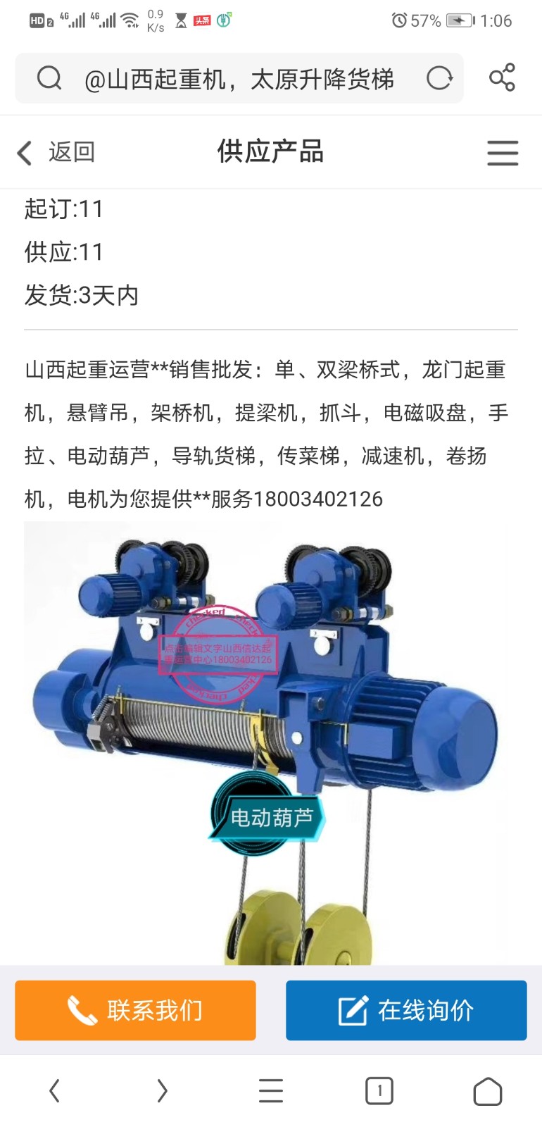 聯系我時,請告知來自全球起重機械網,將會給你95折優(yōu)惠,謝謝!