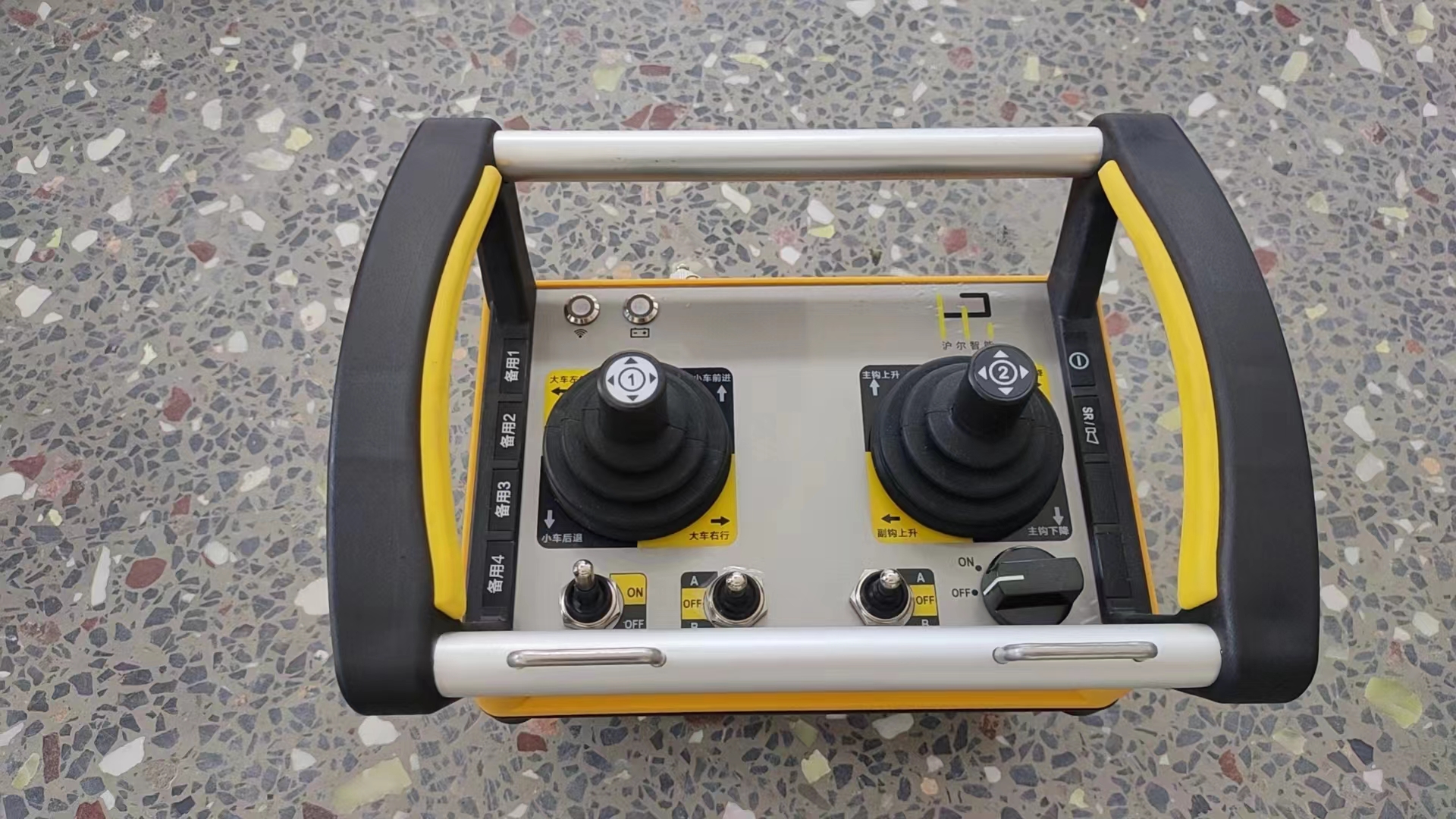 起重機(jī)遙控器,專業(yè)制造商,安全可靠,銷售方便,經(jīng)久耐用,經(jīng)濟(jì)實(shí)惠,簡(jiǎn)易操作,起重機(jī)遙控器可分為有線和無(wú)線兩種。工業(yè)無(wú)線遙控器精致、小巧,方便攜帶,可以實(shí)現(xiàn)對(duì)起重機(jī)的無(wú)線遠(yuǎn)距離操作,遠(yuǎn)距離的滿足可以使操作人員自由選擇 操作位置,提高工作效率和安全性,而且降低操作人員的勞動(dòng)強(qiáng)度,節(jié)省人力和成本。歡迎各界朋友蒞臨參觀、指導(dǎo)和業(yè)務(wù)洽談。
