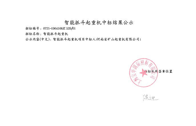 移動版:智能抓斗起重機中標結果公示