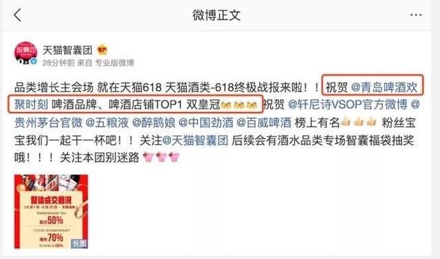 樂收生意寶訊:天貓酒類618戰(zhàn)報(bào)公布,黑馬青島啤酒表現(xiàn)亮眼
