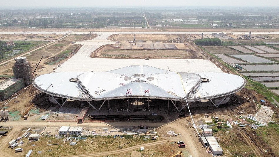 截至6月5日,荊州機場完成地下管網(wǎng)、航管樓塔臺、航站樓鋼結(jié)構(gòu)主體及屋面、機場跑道及站坪的混凝土道面等施工任務(wù),機務(wù)、場務(wù)及車庫、消防救援站也將于6月底移交飛行區(qū),配合飛行區(qū)初步驗收。3月20日正式復(fù)工以來,湖北工建項目部600多人日夜奮戰(zhàn)趕工,確保航站樓9月30日交付。