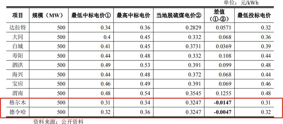 目前國內領跑者項目已出現平價上網案例(格爾木、德令哈)。數據顯示,格爾木項目中標電價區間為0.31元/千瓦時至0.34元/千瓦時,而當地脫硫煤電價為0.3247元/千瓦時。簡而言之,格爾木項目最低中標電價已經低于當地脫硫煤電價,即有能力實現平價上網。