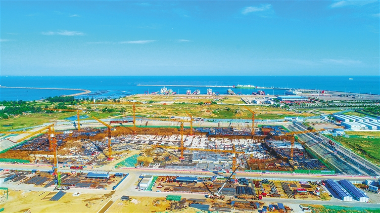 6月12日,航拍位于海口西海岸的海口國際免稅城項目施工現場。