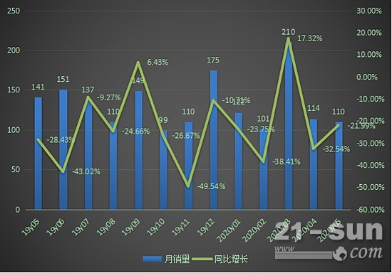 2019.5-2020.5推土機月度銷售情況