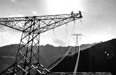 圖為5月8日,國網(wǎng)四川電力送變電建設(shè)有限公司員工在秦嶺腹地的鎮(zhèn)安縣段高空安裝附件。 來源: 經(jīng)濟(jì)參考報(bào)