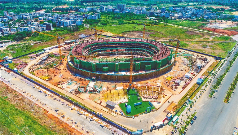據了解,海口五源河文體中心二期項目建設內容包括體育館、游泳館和網球館,其中體育館建設總投資10.9億元,可容納1.8萬名觀眾就座,具備舉辦全運會等全國性以及單項國際比賽條件。海南日報記者 張茂 攝