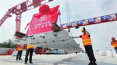 昨天上午,在地鐵10號(hào)線梨園頭車輛段,伴隨著龍門吊將第一段軌排穩(wěn)穩(wěn)地放置到道床上,地鐵10號(hào)線一期工程正式進(jìn)入鋪軌施工階段。