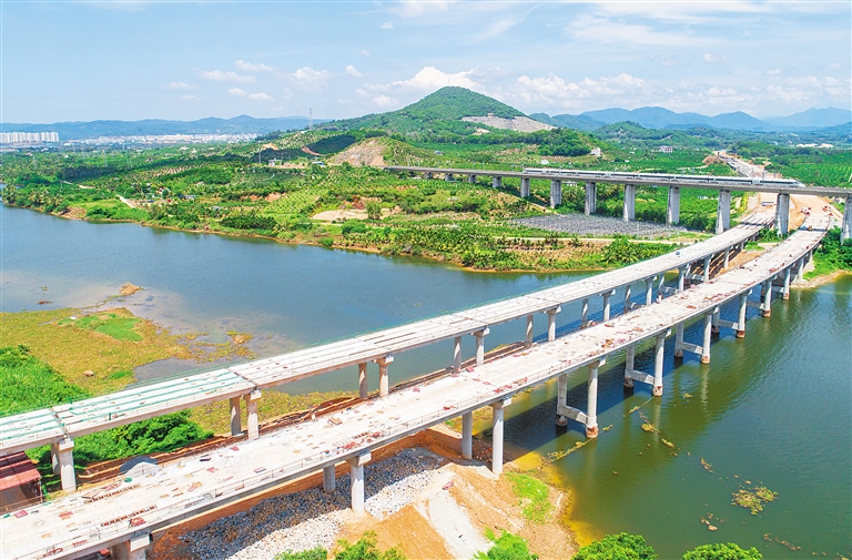 據了解,山海高速三亞段已經建設完成87%,其中橋梁完成80%,路基完成97%,隧道完成95%。南田藤橋東河大橋箱梁架設完成,南田隧道左洞目前已經貫通,右洞也在加緊施工,預計7月底實現貫通。