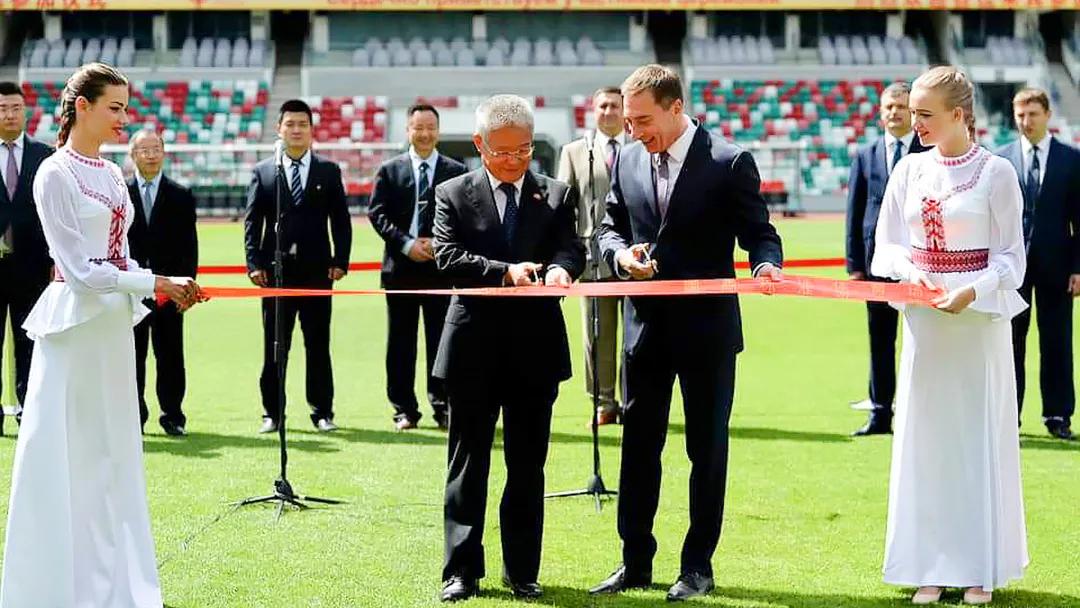 援白俄羅斯國際標(biāo)準(zhǔn)游泳館和國家足球體育場是兩國元首親自參與規(guī)劃的項目;