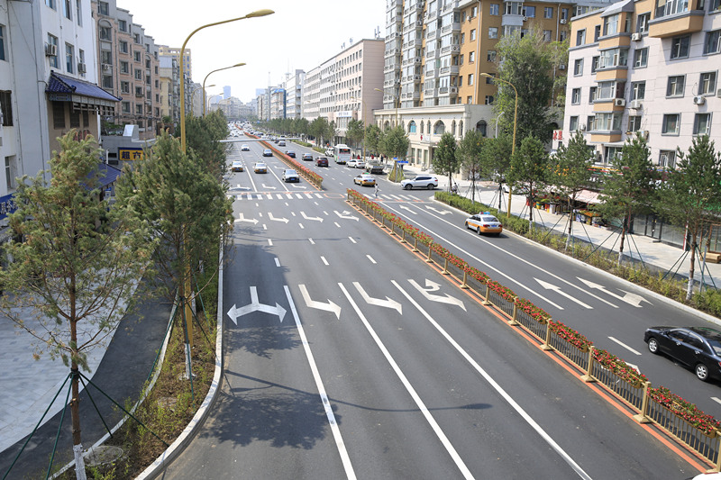 此次改造具體內容涉及車行道、人行道、路緣石、路燈、綠化、地下管線、公交站亭、交通標志、標線。范圍包括人民廣場到長吉互通,包括民康路全段、解放大路(民康路至亞泰大街)、吉林大路全段,全長約9.3公里。鋪裝了停車場四萬余平方米、自行車道八千余平方米,以及理石、污水管線、邊界石等。