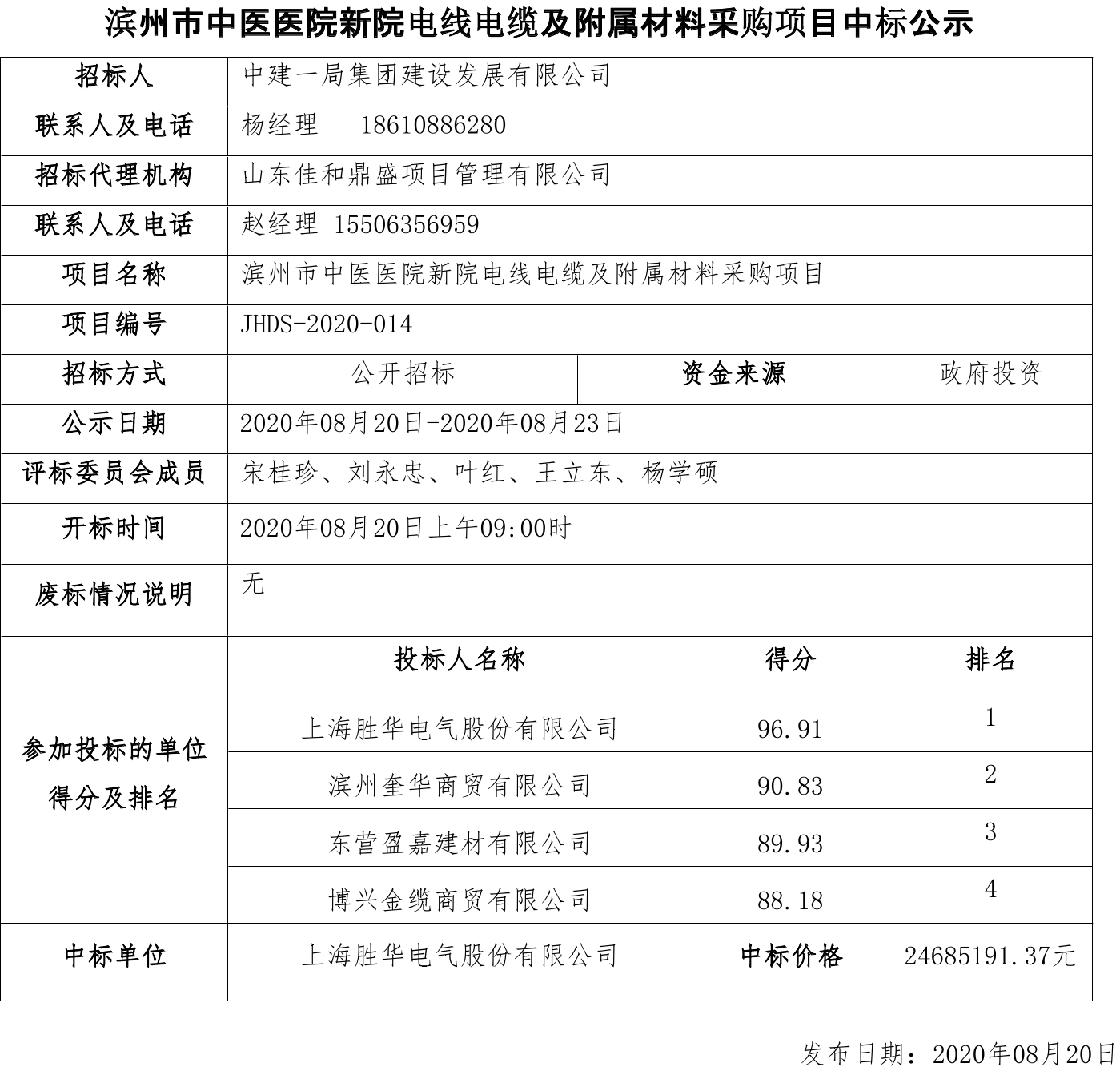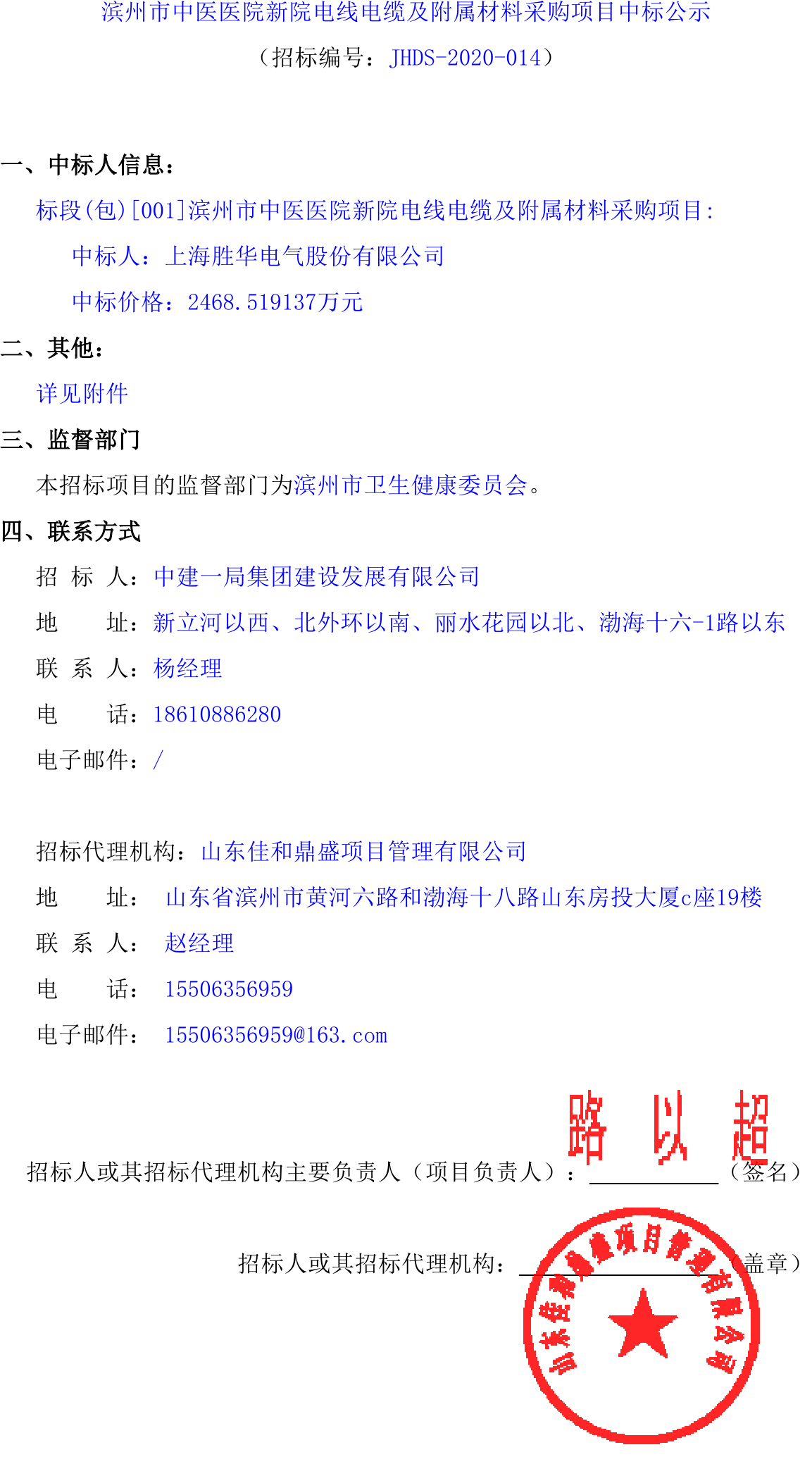 移動版:濱州市中醫醫院新院電線電纜及附屬材料采購項目中標公示