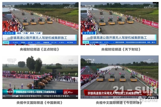 近日,徐工無人集群智能化施工在央視綜合頻道《新聞30分》、央視新聞?lì)l道《朝聞天下》、央視財(cái)經(jīng)頻道《正點(diǎn)財(cái)經(jīng)》、央視中文國際頻道《中國新聞》《今日環(huán)球》等10次報(bào)道引發(fā)熱議,更有央廣網(wǎng)、新華網(wǎng)、江蘇衛(wèi)視、河北衛(wèi)視等百余家媒體爭相報(bào)道。