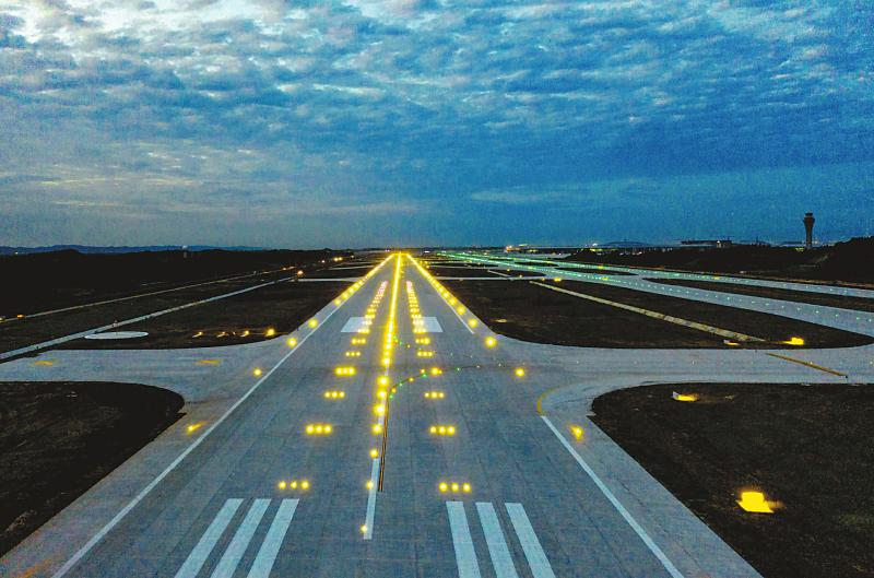成都天府國際機場西一跑道完工并亮燈。記者徐沛東攝