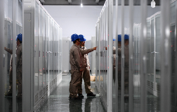10月26日,天津送變電工程有限公司工作人員在變電站主控室內進行檢測工作。