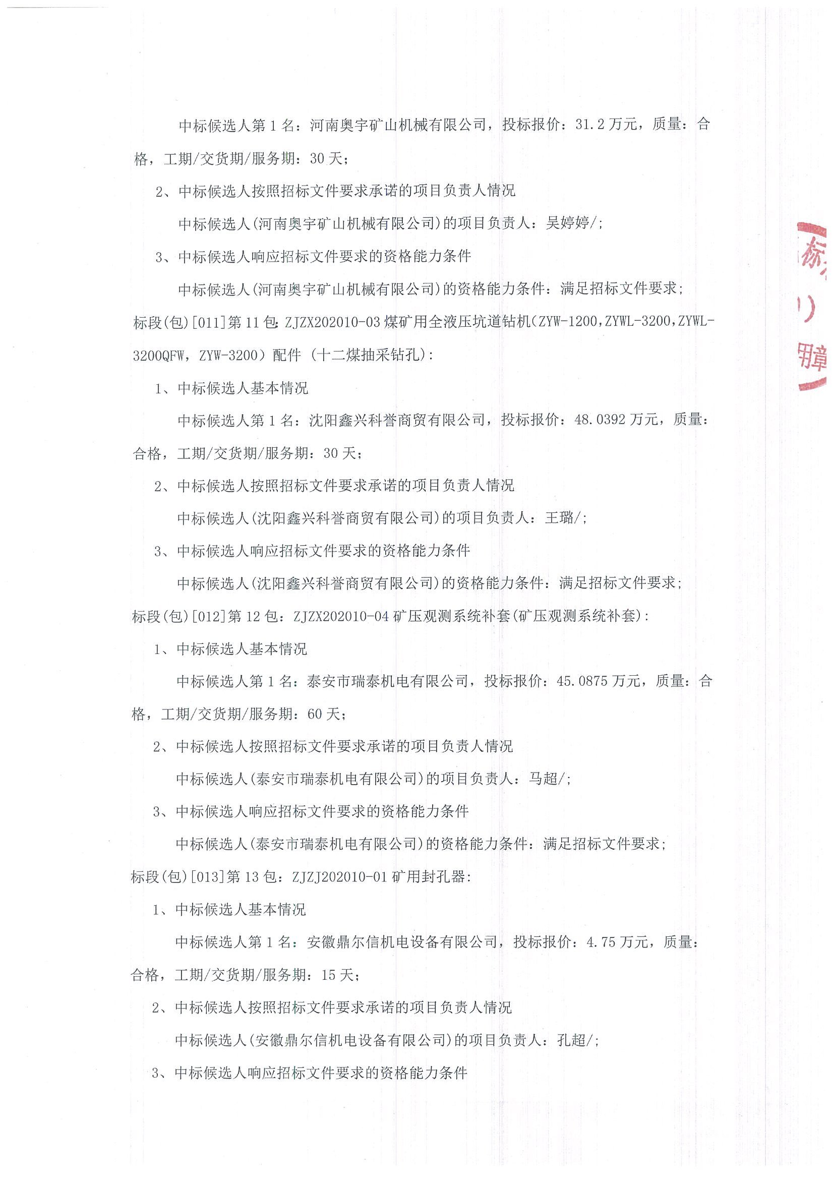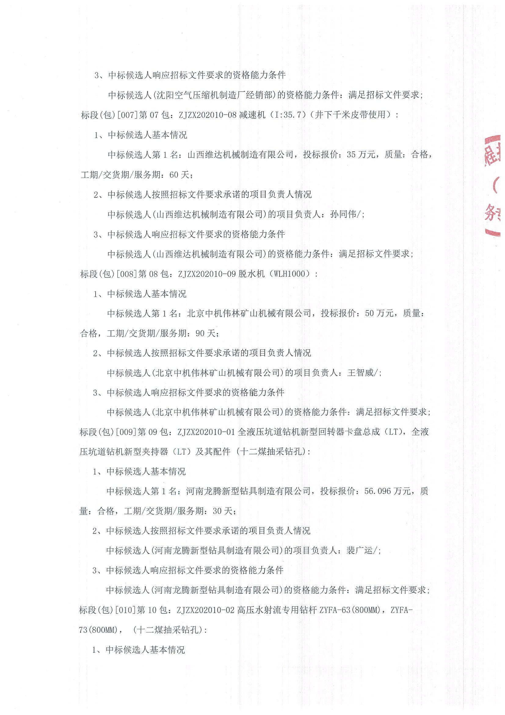 移動版:沈陽焦煤股份有限公司物資供應分公司2020年10月份專項及檢修采購計劃(二次公告)中標候選人公示