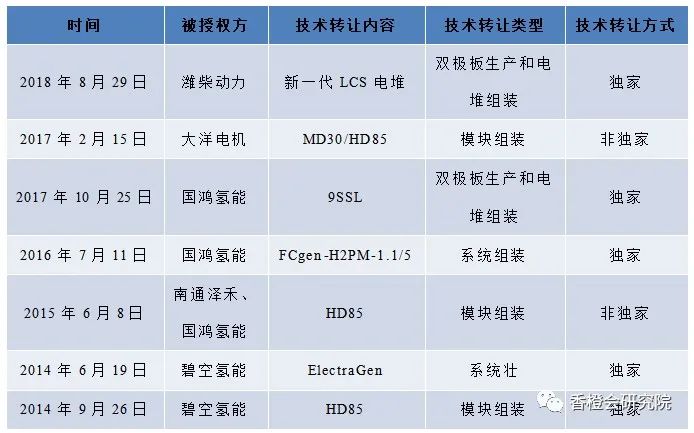 圖表3 巴拉德技術轉讓協議一覽