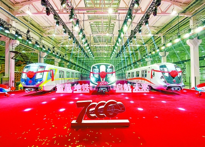 昨天下午,隨著三列最新的全自動駕駛列車亮相上海地鐵封浜基地,上海地鐵列車數(shù)量正式進(jìn)入7000輛的新時(shí)代。 記者 孟雨涵 攝