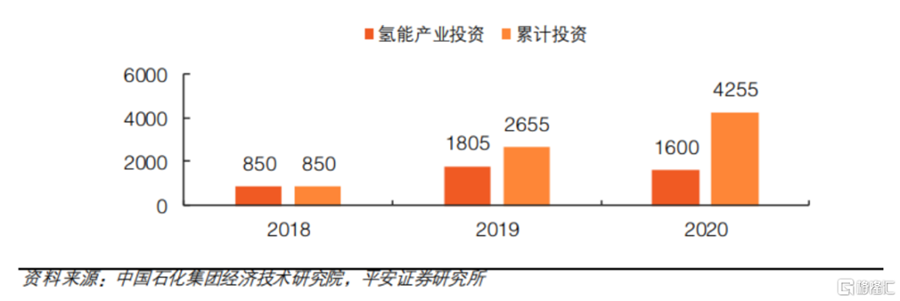 同時,近幾年,氫能產業的投資規模在持續增長,疫情也并未對此積極局面產生影響。根據公開信息初步統計,2019年氫燃料電池產業相關投資及規劃資金1805億元。盡管受到疫情影響,2020年氫能產業整體發展速度有所放緩,但在投資方面,投資金額 1600 億元,僅有11%左右的降幅,顯示了市場對于氫能產業依舊充滿信心。