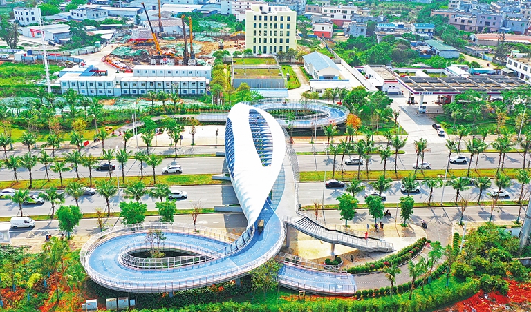 4月15日,位于海口市龍昆南延長(zhǎng)線的兩座立體天橋正式投入使用。兩座天橋被命名為“巨浪”“飛魚”,分別位于萬人海鮮廣場(chǎng)、恒大旅游文化城附近,不僅外觀造型別致,而且還設(shè)置了電動(dòng)車專用道,市民騎著電動(dòng)車也可從橋上輕松通過。