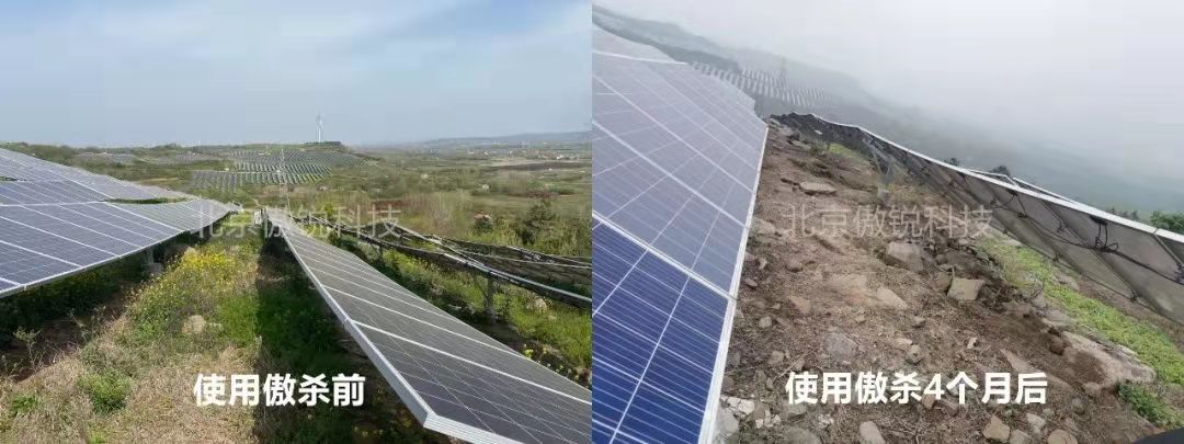 傲銳科技相關負責人介紹,與農用場合相比,光伏等工業場合的雜草更為復雜。如果單獨使用各種除草劑,總會表現出一定的局限性。同時,一些除草劑單劑品種大面積地使用,會致使很多雜草產生抗藥性,除草效果下降。他強調,“傲殺”系列工業除草劑基于復合配方技術將多種有效成分科學復配,并輔之以專業的“量身配藥”及科學應用技術指導,在鐵路、公路、光伏等工業領域均取得了優異的效果,除草成本還能下降50%左右,堪稱是復配型除草技術的典范。