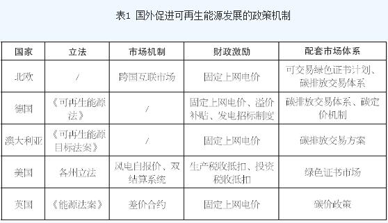 歐美國家在推進新能源發展過程中,不僅規定了中長期戰略目標,還重視能源立法及體制機制設計。在立法方面,英國出臺《能源法案》及《電力市場改革》,德國不斷修訂《可再生能源法》等,以完整的法律框架保證了能源政策的前瞻性、連續性、可操作性。在市場機制方面,英國的雙向付費差價合約制度通過合同價格信號引導低碳電力投資,保障可再生能源發電企業收益。在財政激勵政策方面,德國在可再生能源發展的不同階段,靈活制定包括固定上網電價、溢價補貼和發電招標制度在內的財政激勵政策。在配套市場體系方面,英國設置包括碳排放稅和配套碳價政策以限制燃煤發電;美國基于可再生能源配額制建立配套的綠色證書市場,強制性可再生能源發展目標與綠證市場相互配合、協調運行。