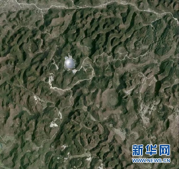 衛星照片上截取的“中國天眼”及周邊道路圖。中國天眼科普基地供圖