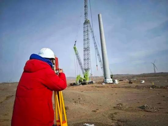 該項目是混塔風機安裝項目,混塔塔架相較于柔性鋼塔,對施工工藝要求更為嚴格。并且項目所在地地勢多為沙漠戈壁,平均每月有12天的大風氣候,風速可達15米至30米每秒,時有沙塵氣候產生,給施工造成極大影響。終究,施工方技能員們因地制宜,為項目部量身打造出了一套技能施工方案,作為主吊設備的ZCC13000履帶吊的安穩發揮,也為項目順利收官供給了強壯保障。