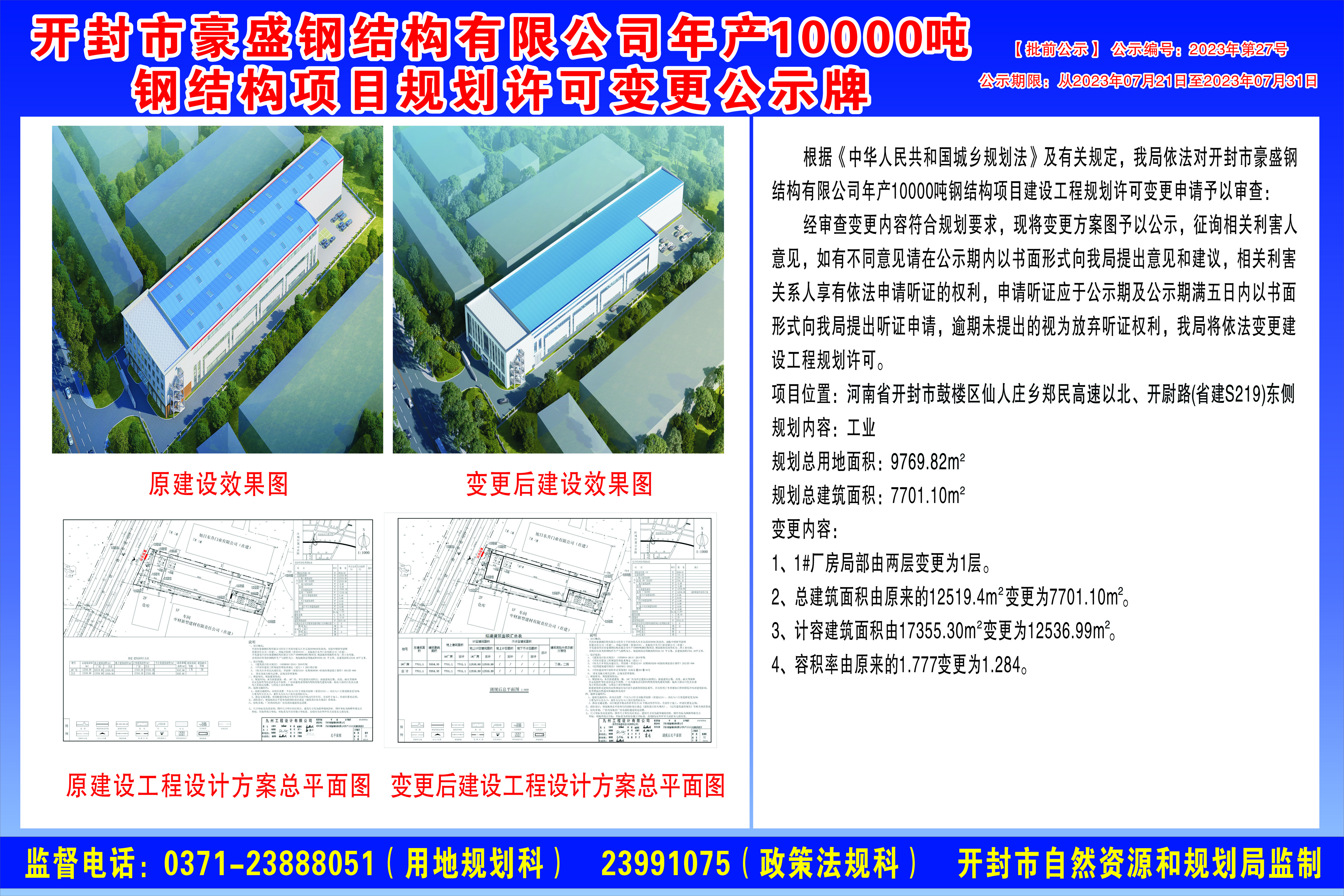 開封市豪盛鋼結構有限公司年產10000噸鋼結構項目規劃許可變更公示