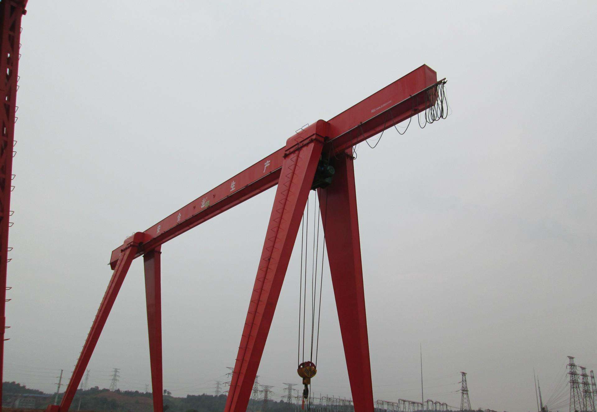 一般情況下,起重量在50t以下,跨度在35m以內(nèi),無特殊使用要求,宜選用單主梁式。如果要求門腿寬度大,工作速度較高,或經(jīng)常吊運(yùn)重件、長大件,則宜選雙梁門式起重機(jī)。