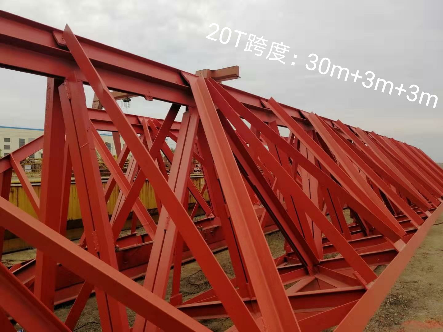 20頓.跨度:30米,各懸3米花架龍門(mén)吊
