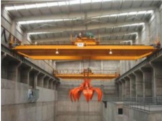 開斗時,上橫梁滑輪和下橫梁滑輪**距加大,然后支持鋼絲繩落下,將已打開的抓斗,落在要抓取的松散堆積物上面,再收繞開閉鋼絲繩,將上橫梁滑輪與下橫梁滑輪的**距恢復到原來的位置,這樣**完成了抓取物料過程。在閉合的斗部里已裝滿了物料,**提升開閉鋼絲繩,整個抓斗亦被吊起,經行車移動到所需卸料場地上,開斗卸下所抓取的物料。
