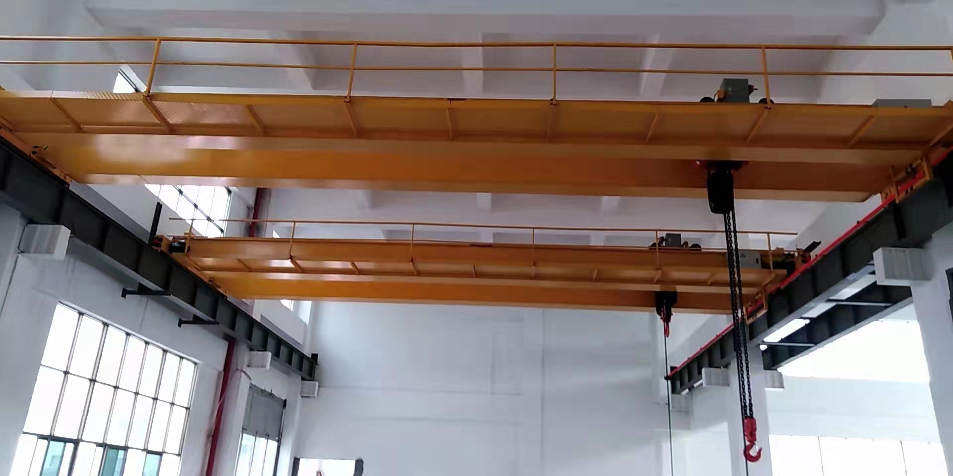 e.兩個吊鉤的起重機不準兩鉤同時吊兩個物件;不工作的情況下調整起升機構制動器。