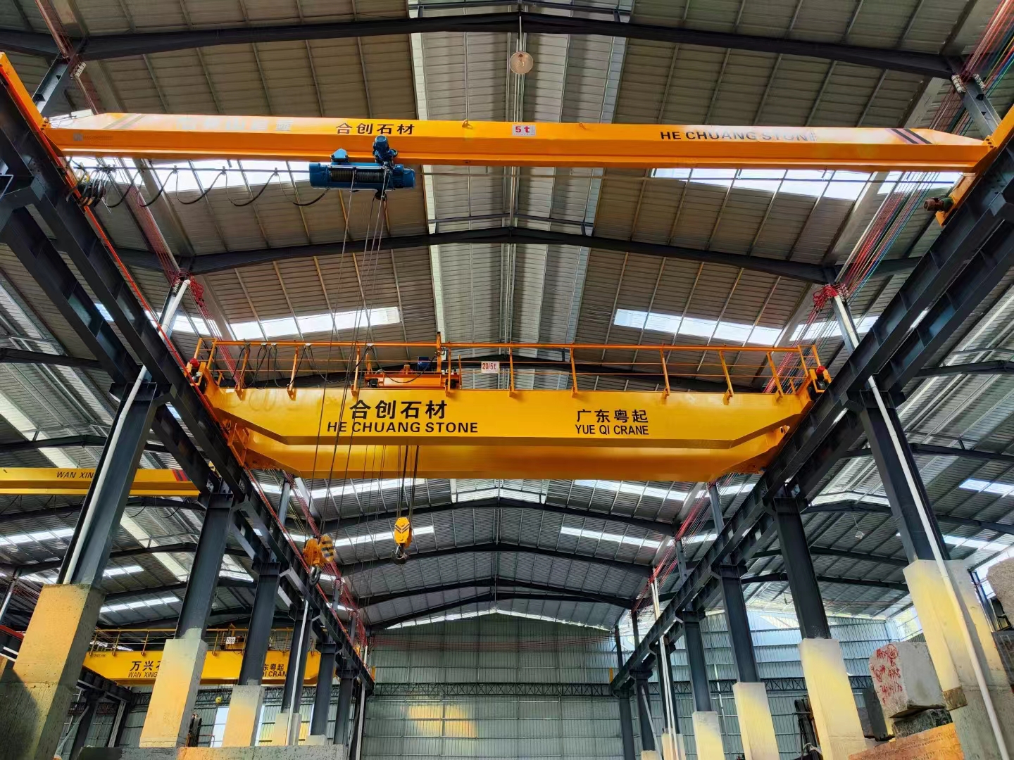 橋式起重機(jī)是橫架于車間、倉庫和料場上空進(jìn)行物料吊運(yùn)的起重設(shè)備。由于它的兩端坐落在高大的水泥柱或者金屬支架上,形狀似橋。橋式起重機(jī)的橋架沿鋪設(shè)在兩側(cè)高架上的軌道縱向運(yùn)行,可以充分利用橋架下面的空間吊運(yùn)物料,不受地面設(shè)備的阻礙。它是使用范圍**廣、數(shù)量**多的一種起重機(jī)械。