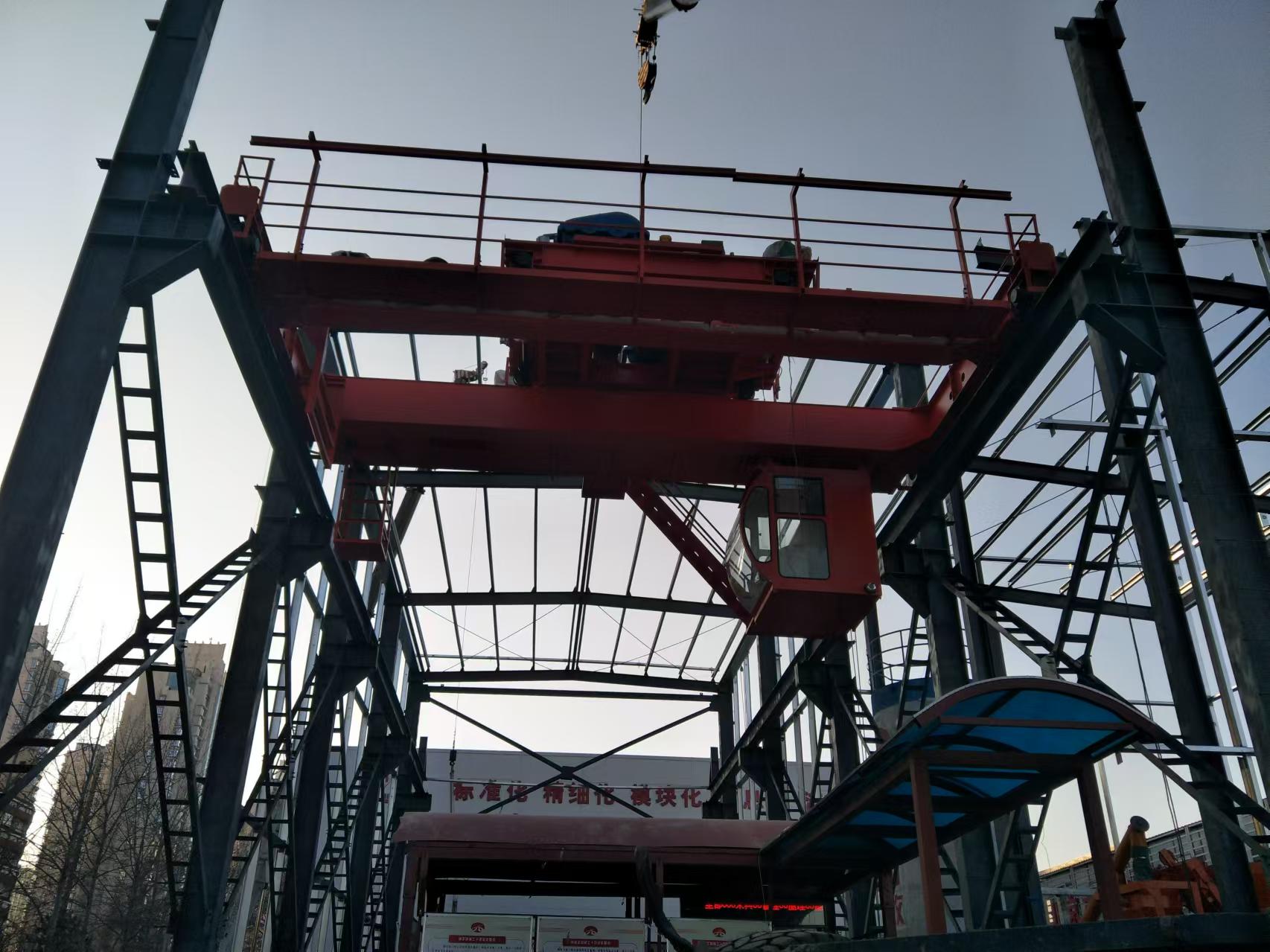 雙梁橋式起重機一般由機械、電氣和金屬結構三大部分組成。雙梁橋式起重機外形象一個兩端支承在平行的兩條架空軌道上 平移運行的單跨平板橋。